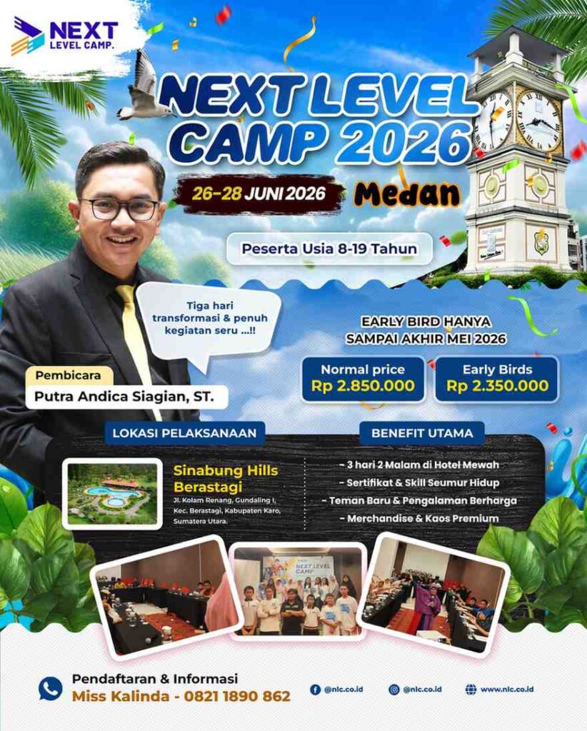 Liburan ini, jangan cuma rebahan. Di NLC Berastagi, kamu akan menemukan kekuatan baru dalam dirimu! Siap untuk jadi pribadi yang lebih tangguh, percaya diri, dan penuh semangat meraih masa depan!