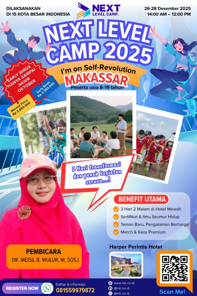 Salah satu program yang semakin dikenal adalah Next Level Camp Makassar 2026 — sebuah camp pendidikan dan pengembangan diri untuk anak dan remaja yang dirancang untuk membantu peserta berkembang menjadi pribadi yang lebih percaya diri, kreatif, dan siap menghadapi tantangan masa depan.